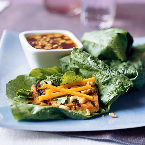 Là món ăn đơn giản với đậu phụ nướng và các loại rau salad được ăn kèm với nước sốt đậu phộng