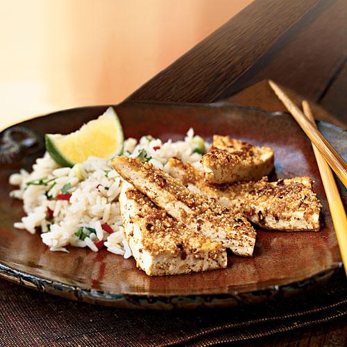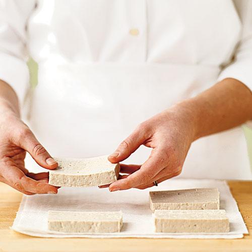 Đậu phụ nướng tẩm gia vị sau đó trình bày như món salad với cà chua, ô liu, rau bina... và một số loại rau trộn khác