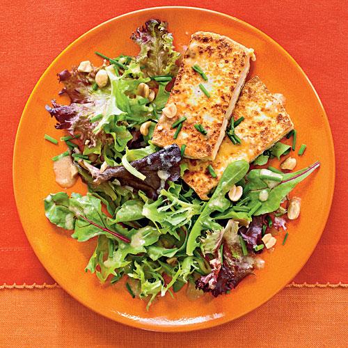 Salad đậu phụ nướng và nước sốt đậu phộng