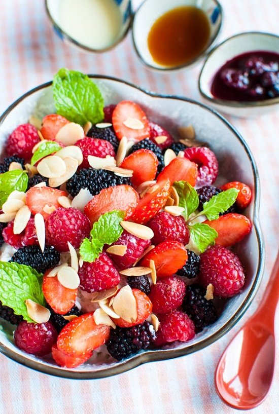 Trước tiên phải kể đến món Berries Yogurt Kakigori - đá tuyết sữa chua cùng các loại dâu: mulberry dâu tằm, raspberry phúc bồn tử, dâu tươi Đà Lạt. Không lấy làm lạ khi món ăn này nhanh chóng chiếm được tình cảm của chị em phụ nữ bởi các loại dâu vốn chứa nhiều vitamin C chống lão hóa, dưỡng chất vitamin C trong dâu sẽ giúp tiêu diệt các tế bào gốc tự do, giúp quá trình tổng hợp collagen được tiếp tục để duy trì vẻ đẹp cho làn da.