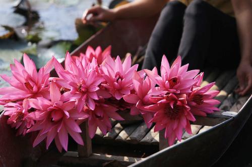 Nếu những loại hoa khác có thể dùng để chế biến những món ăn dân dã, hoa sen lại là loại hoa đặc biệt thích hợp với những món ăn có tính chất vương giả. Hầu hết các bộ phận của cây sen đều ăn được như hạt sen, nhụy sen, tim sen, củ sen hay ngó sen. Hoa sen có sẵn vị ngọt, lại lành tính rất tốt cho sức khỏe. Có một món ngon từ hoa sen thuộc hàng cao lương mĩ vị chốn cung đình là vịt hấp hoa sen. Bên cạnh đó là rất nhiều món ăn có sự kết hợp của hương sen như cơm sen, nộm sen hay chè sen. Tất cả đều mang hương vị đặc trưng của ẩm thực Việt Nam.