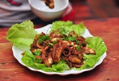 Ngoài bạch tuộc sa tế, thực đơn ở đây còn có bạch tuộc chiên mắm. Tuy nhiên, theo cảm nhận của nhiều khách, món này giá tương đương song không xuất sắc bằng.