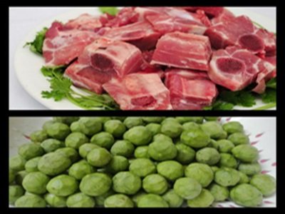 - Luộc sơ sườn, vớt ra để ráo. Lấy nước luộc sườn ninh sấu. Khi sấu chín nhừ, dầm nát, vớt bỏ hạt.