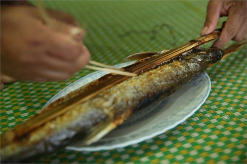 Cá sau khi bắt về được chế biến sạch bằng cách moi ruột, ướp muối, rồi kẹp nướng. Cá được kẹp bằng những thanh tre tươi, nướng trên than hồng, chỉ cần đặt cá lên vài bếp than vài phút bạn là đã có thể nghe tiếng cá xèo xèo và mùi thơm dậy lên.