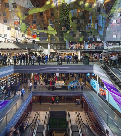 Toàn bộ phần trần cong của trung tâm thương mại đầy hình ảnh các loại trái cây màu sắc sặc sỡ, hải sản tươi ngon hòa vào nhau như một bức tranh lớn phủ đầy diện tích 3.350 m2. Tác phẩm hình ảnh này mang tên “Cornucopia” được thực hiện bởi các nghệ sĩ Arno Coenen và Iris Roskam.