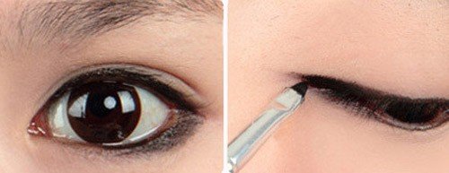 Bước 2: Kẻ đường viền mắt bên trên mí mắt, kéo nhẹ và dài ra ở phần đuôi mắt.