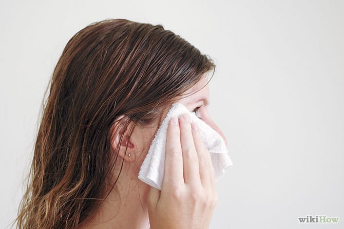 1. Loại bỏ tất cả kem trang điểm với dầu ô liu. Sau đó, massage nhẹ nhàng và rửa sạch với nước ấm và xà phòng dịu nhẹ (loại dành làm cho trẻ sơ sinh thường không chứa hóa chất mạnh như người lớn).