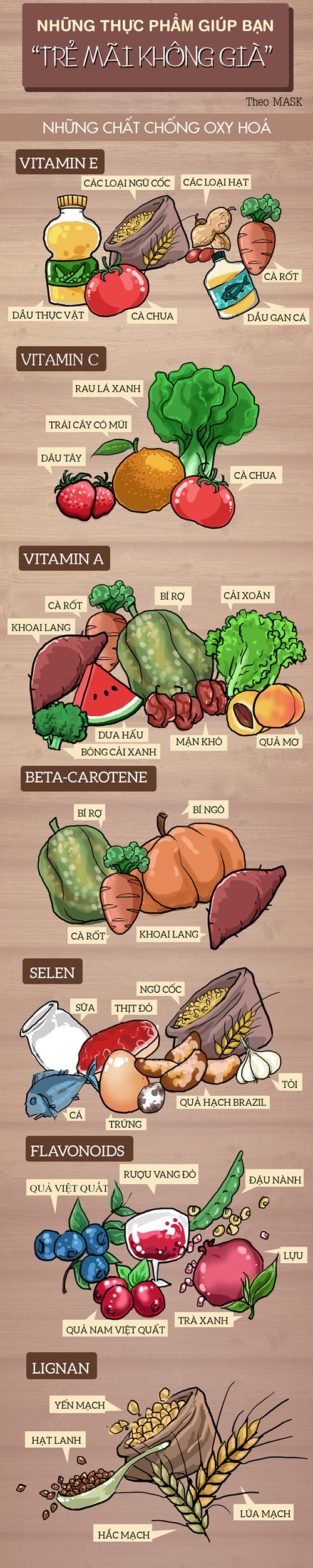 Bằng cách bổ sung những thực phẩm chứa nhiều chất chống oxy hóa vào bữa ăn hàng ngày, chúng sẽ ngăn ngừa và làm chậm lại quá trình lão hóa của cơ thể.
