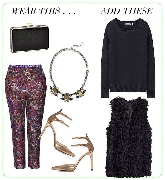Áo len đen đơn giản và áo gile lông trang nhã là những món đồ hoàn hảo để mang lại cái nhìn thanh lịch và duyên dáng chốn văn phòng.
