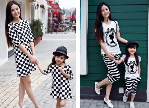Các em bé gái càng lòe loẹt, rực rỡ thì càng đáng yêu. Nhưng các bà mẹ thì cần sự tinh tế, chừng mực để vẫn trẻ trung mà không bị lố. Thế nhưng nhiều bà mẹ sai lầm khi chọn đồ đôi cho mẹ và con gái nhưng chỉ quan tâm màu sắc của con để "ăn theo". Trong khi đó, nguyên tắc chọn đồ đôi là màu sắc phải hợp với mẹ trước. Sau đó mới tính đến sự dung hòa với con.