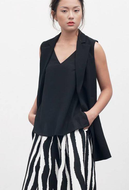 Nếu bạn đã qua tuổi teen và thích vẻ đẹp của một cô gái trưởng thành quyến rũ, sao không mặc một chiếc quần loa cá tính và phá phách với vest dáng dài không tay?