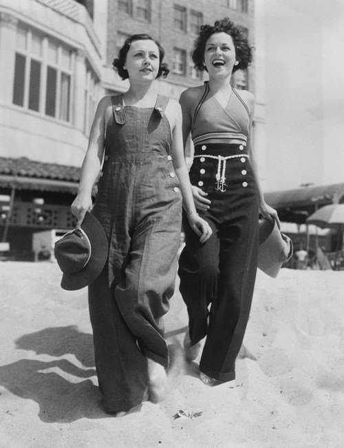 Hai cô gái tại bãi biển, ảnh chụp vào đầu những năm 1930. Chúng ta có thể để ý quần cạp cao và mũ vải đã xuất hiện từ thời đó. (Nguồn: Đẹp/Vietnam+)
