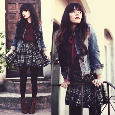 Đôi khi, kết hợp chân váy dáng xòe cùng chiếc áo khoác denim cũng khiến bạn cực kì nổi vật vì gout thẩm mĩ của mình.