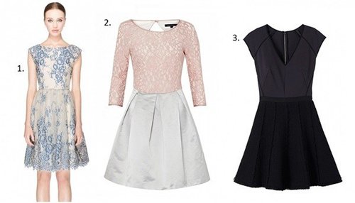 1. Váy chữ A ôm xòe Alice+Olivia giá 597USD, 2. Váy French Connection giá 288USD, 3. Váy Rebecca Taylor giá 375USD.