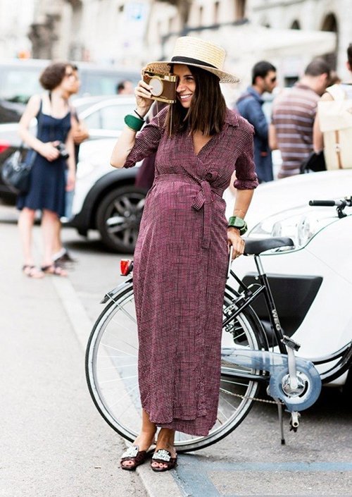 Wrap dress là sự lựa chọn hoàn hảo cho những bà bầu, ôm dáng và điệu đà với nút thắt khéo ở vòng eo