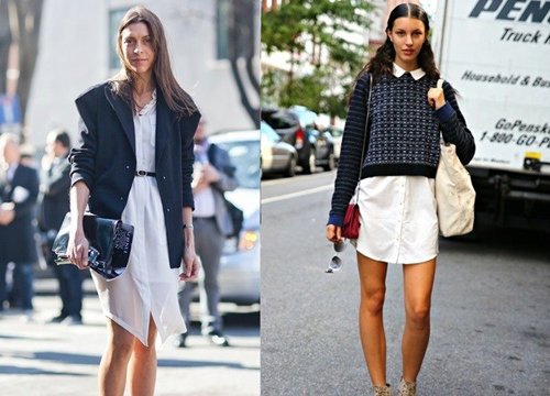 Shirtdress cũng luôn là "lớp đệm" hoàn hảo khi kết hợp cùng áo khoác blazer và áo len cổ tròn.