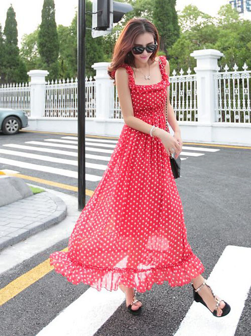 Có hai dòng maxi Hàn tồn tại song song trong mùa hè nồng nhiệt bởi bóng đá năm nay: Kiểu truyền thống thụng dài tha thướt và kiểu tối giản ôm dọc cơ thể tôn vinh đường cong.