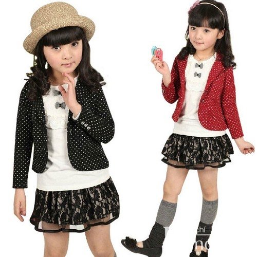 Áo phông trắng + vét chấm bi + chân váy ren + tất cao cổ và giày búp bê: trông bé sẽ vô cùng đáng yêu với bộ trang phục này. Một chiếc mũ phớt bằng cói sẽ phù hợp trong những ngày có nắng. Khi trời trở nên nóng hơn vào buổi trưa bé có thể bỏ bớt áo vét mà vẫn dễ thương.