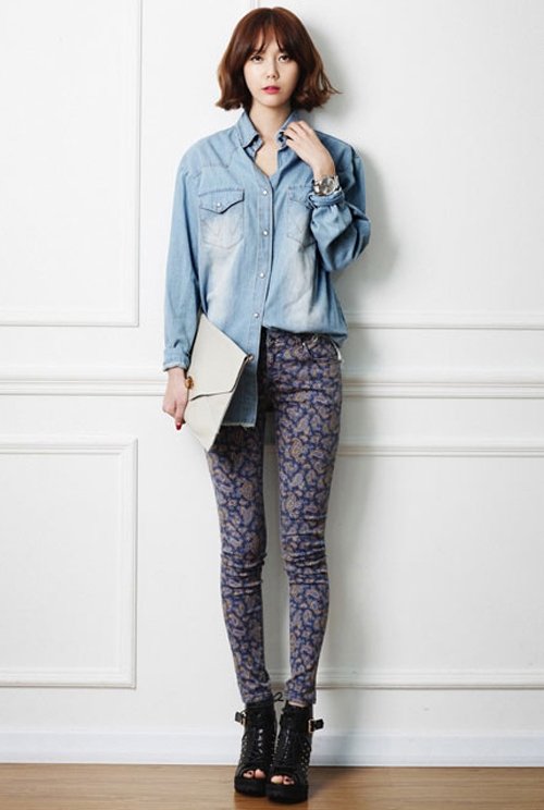 Nếu bạn mặc những chiếc áo hơi rộng hoặc có nhiều điểm nhấn thì nên mặc quần skinny có màu sắc đừng quá tối, và phối thêm với một đôi giày có màu sắc hay họa tiết nổi bật, như vậy sẽ làm tôn lên vẻ đẹp đôi chân bạn. Sơvin áo oversized cùng quần skinny theo kiểu trước ngắn, sau dài cũng làm vòng 3 bạn trông đầy đặn hơn.