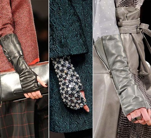 Năm nay, những chiếc găng tay hở ngón cũng xuất hiện mới lạ. Chất liệu da và xu hướng ánh kim vẫn chiếm lĩnh mùa Thu Đông, bên cạnh đó, những chiếc găng tay được đính cườm lấp lánh cầu kỳ cũng trở thành tâm điểm.