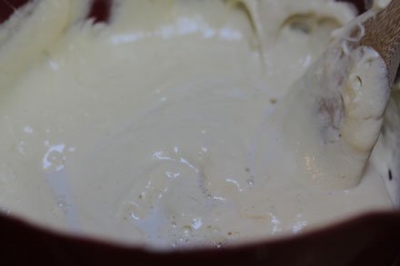 - Cho hỗn hợp sữa và mật ong ở bước 3 vào trộn cùng, trộn nhẹ tay.