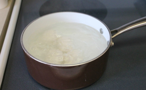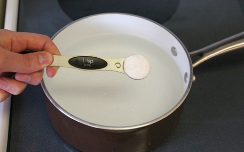 Bước 1: Đổ nước lạnh vào 2/3 nồi rồi thêm 5g baking soda. Nếu luộc nhiều trứng cùng lúc trong nồi thì sử dụng 10g baking soda. Baking soda sẽ làm tăng độ pH của nước, làm trứng luộc dễ dàng bóc vỏ hơn.