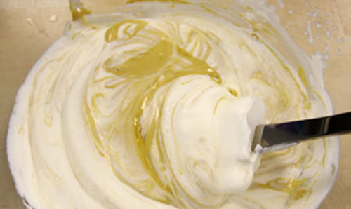 - Đợi cho hỗn hợp gần nguội, cho hôn hợp vào bắt kem