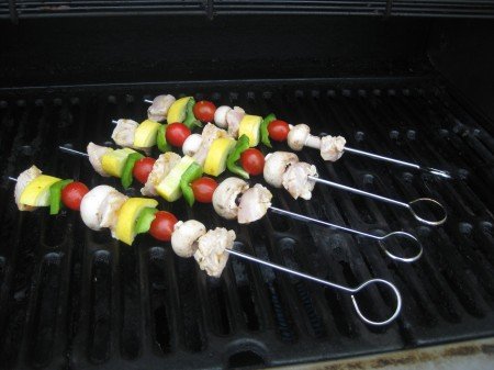 Mặc dù bạn đã cho thêm một chút dầu ăn vào nguyên liệu trong giai đoạn ướp, hãy chuẩn bị thêm 1 chén dầu ô-liu, cùng với 1 cây cọ sạch. Trong khi nướng thức ăn, liên tục quết dầu ăn trên bề mặt cũng như các khe xiên. Làm như vậy sẽ dễ dàng hơn cho bạn khi lấy thức ăn ra khỏi xiên sau đó.