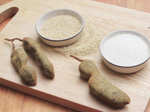 Bước 3: Bóc bỏ vỏ me, lấy phần ruột me cho vào chảo. Thêm 1 chút nước (khoảng 500ml) rồi đặt chảo me lên bếp, vừa đun vừa quấy để thịt me tan ra.