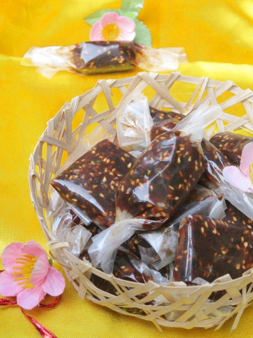 Hoặc gói từng chút mứt vào giấy bóng kính thành những viên kẹo me. Với cách làm mứt me ngào đường như thế này, đảm bảo sản phẩm ngon mê.