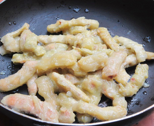 Bước 2: Trong lúc luộc me thì cho vừng vào chảo, rang chín vừng.
