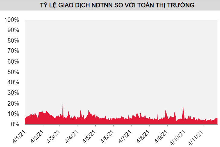 Với sự nhập cuộc mạnh từ nhà đầu tư nội, chỉ số VN-Index liên tiếp lập đỉnh mới, thanh khoản thị trường cũng tăng vọt lên hàng tỷ USD mỗi phiên, bất chấp áp lực bán ròng của khối ngoại. Hiện nay, sức ảnh hưởng của nhà đầu tư ngoại lên thị trường không còn quá lớn như trước. Hiện nay, tỷ trọng giao dịch của nhà đầu tư ngoại chỉ còn chiếm khoảng 7% thanh khoản thị trường, trong khi vào thời điểm đầu năm nay, giao dịch của nhà đầu tư ngoại vẫn còn chiếm trên 10% thanh khoản mỗi phiên.