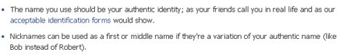 Còn chính sách mới (hiện chưa cập nhật bản tiếng Việt) khẳng định người dùng có thể đăng ký tên mà bạn bè vẫn gọi họ trong đời thực.