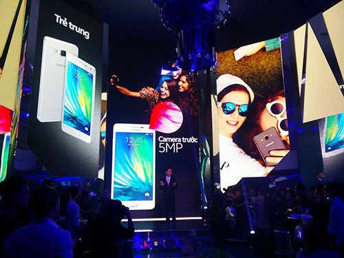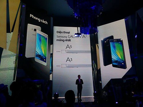 Tối ngày 23/3 tại TP.HCM, Samsung đã chính thức giới thiệu Galaxy A3 và A5 - dòng điện thoại đầu tiên được thiết kế với thân kim loại nguyên khối.Như vậy sau khi được hãng điện tử Hàn Quốc giới thiệu trong một sự kiện riêng vào cuối tháng 10, ngày hôm nay bộ đôi smartphone đình đám với thiết kế vỏ kim loại nguyên khối đầu tiên của Samsung đã cập bến thị trường Việt. Khác với những lần ra mắt hoành tráng trước đây, Samsung trình làng Galaxy A tại một quán bar trên cao. Sự kiện thu hút giới truyền thông và nhiều nhân vật của làng giải trí. Hãng này cho biết, những người dùng trẻ, năng động, cá tính là khách hàng sản phẩm này.
