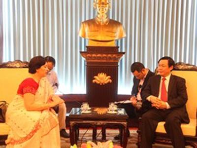 Ông Vương Đình Huệ, Trưởng Ban Kinh tế Trung ương tiếp bà Preeti Saran, Đại sứ Ấn Độ tại Việt Nam. (Ảnh: Thanh Liêm)