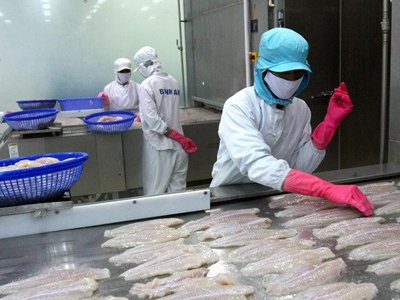 Chế biến cá tra xuất khẩu. (Ảnh: Huy Hùng/TTXVN)