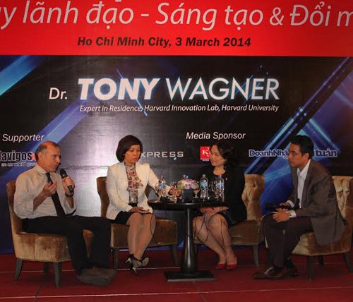 Với chủ đề “Tư duy lãnh đạo-Sáng tạo và Đổi mới,” giáo sư-tiến sỹ Tony Wagner đã chia sẻ với lãnh đạo các doanh nghiệp, các nhà quản lý nhân sự, các nhà giáo dục của Việt Nam về những kỹ năng trí tuệ then chốt trong nền kinh tế tri thức toàn cầu.