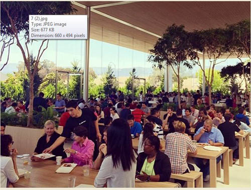 Apple có thể không cung cấp đồ ăn miễn phí như Google hay Facebook nhưng vẫn có đồ ăn ngon (dù phải bỏ tiền mua). Nhân viên công ty có thể thưởng thức những món ăn hay đồ uống siêu ngon tại Caffe Mac ở trụ sở chính tại Cupertino. Apple đang xây dựng căng tin mới tại công ty.
