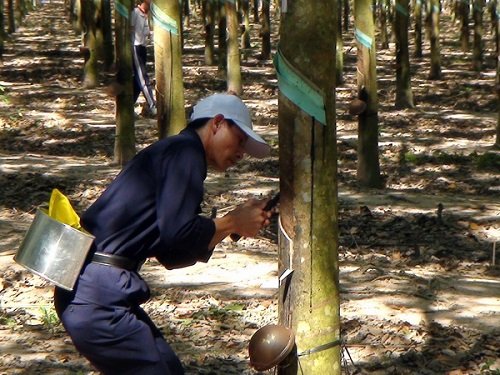 Khai thác cao su. (Ảnh minh họa: Vũ Tiến Lực/TTXVN)