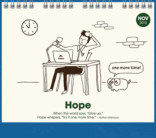 Bộ lịch sáng tạo 12 tháng trong năm thổ lộ những cung bậc cảm xúc thú vị của nhân viên văn phòng, được tạo ra bởi Adtima - bộ phận phụ trách các sản phẩm quảng cáo truyền thông, giải trí của công ty VNG, đã mang lại nhiều hứng khởi cho người xem.