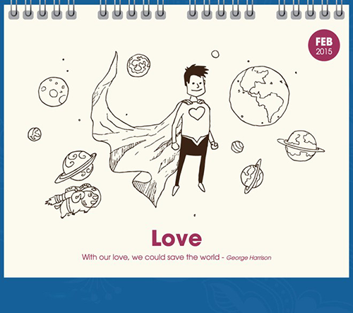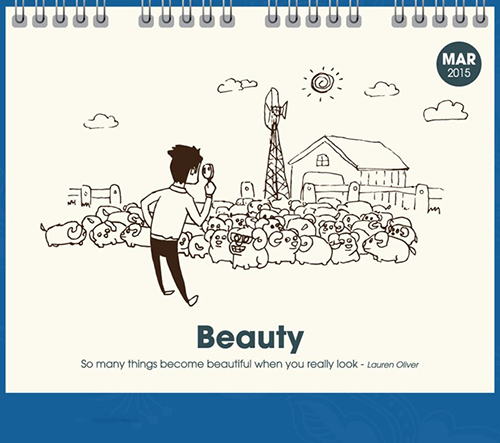 Ý tưởng của lịch được chia theo cảm xúc công việc theo từng tháng, từng mùa trong năm. Ví như, t ừ tháng 1 đến tháng 3 xoay quanh chủ đề mùa xuân, mùa mang lại niềm vui, hạnh phúc, tình yêu, sự tươi đẹp (happiness, love, beauty).