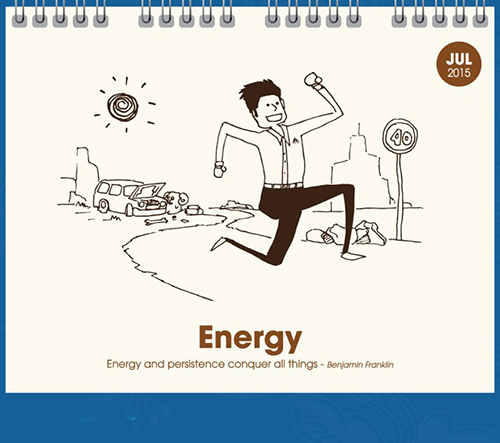 Các chủ đề của tháng như cần thêm năng lượng, vượt qua thử thách, cần phải có sự phối hợp kết nối với các bộ phận khác (energy, challenge, connection).