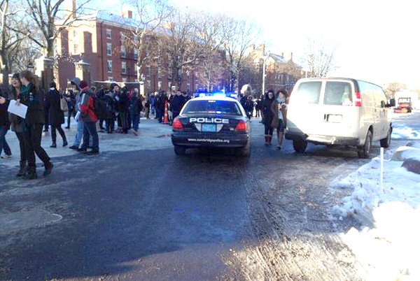 Cảnh sát được huy động song không tìm thấy bom hay vật liệu đáng ngờ nào ( Ảnh: Harvard Crimson)