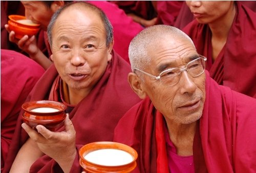 Các vị sư ở Tây Tạng uống trà bơ trong một buổi lễ.