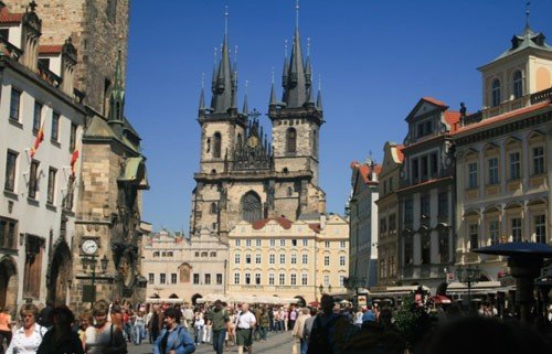 Khu quảng trường chính của phố cổ Praha được bao quanh bởi nhà thờ Đức bà Tyn xám đen với hai ngọn tháp vút cao lên bầu trời, cùng tháp đồng hồ cao sừng sững bao gồm Đồng hồ Thiên văn Astronomical và lịch nguyên năm Calendarium thiết kế từ thế kỷ thứ 15. Mỗi khi chuông Skeleton ngân vang báo hiệu mỗi giờ, 12 bức tượng thánh tông đồ lại mở cửa sổ đồng hồ ra chào đón du khách.