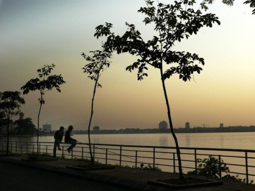 2 cậu bé ngồi câu cá bên Hồ Tây, Hà Nội, Việt Nam vào tháng 11/2008. Ảnh: Chitose Suzuki/AP.