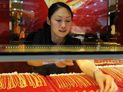 Cửa hàng vàng tại Hợp Phì, thủ phủ tỉnh An Huy, miền đông Trung Quốc. (Ảnh; AFP/TTXVN)