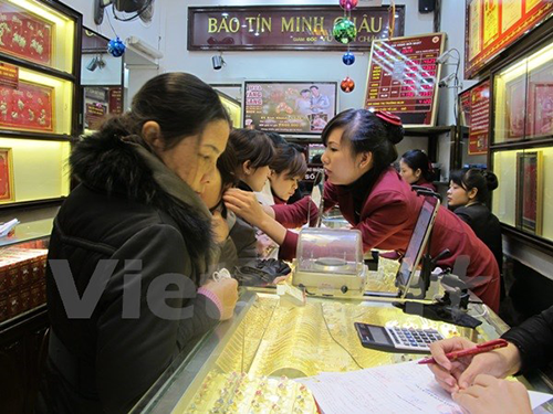 Khách hàng đang giao dịch vàng miếng (Ảnh: Đức Duy/Vietnam+))