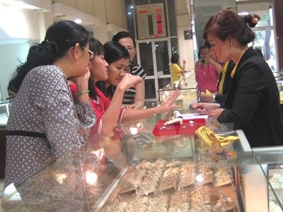 Khách hàng giao dịch vàng miếng (Ảnh: TTXVN)