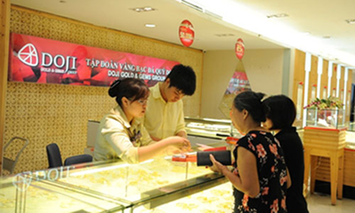 Vàng trong nước xuống giá, về ngang bằng với hồi đầu năm trong sáng nay. Ảnh: Doji